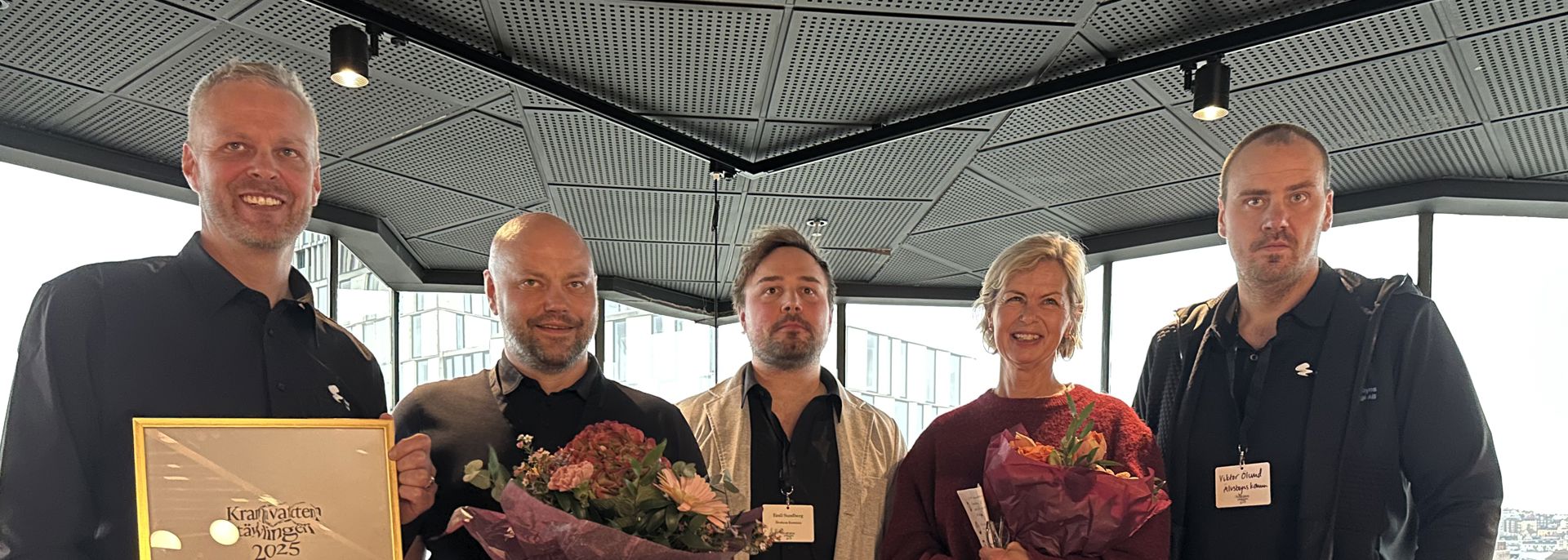 Foto: Vinnarkommunen Älvsbyns representanter tillsammans med juryns ordförande Gunilla Hultgren Karell