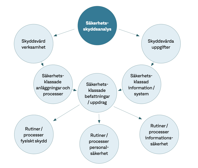 Alla samhällsviktiga verksamheter, myndigheter och privata aktörer, som bedriver säkerhetskänslig verksamhet ska utreda behovet av säkerhetsskydd och dokumentera det i en säkerhetsskyddsanalys. Det första kravet enligt säkerhetsskyddslaglagen är att genomföra analysen där resultatet visar om man omfattas av resterande krav i lagstiftningen. Med utgångspunkt i analysen ska verksamhetsutövaren planera och vidta de säkerhetsskyddsåtgärder som behövs med hänsyn till verksamhetens art och omfattning, förekomst av säkerhetsskyddsklassificerade uppgifter och övriga omständigheter. Säkerhetspolisens föreskrifter och vägledningar om säkerhetsskydd utgör en bra grund till arbetet.