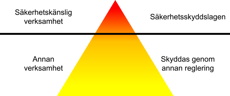 Om organisationen inte omfattas har man gjort en stor del av säkerhetsarbetet redan. Delar av analysen (i sekretessbehandlad eller ursprunglig form) kan överföras till diskussioner kring risk- och sårbarhetsanalyser, analyser om informationssäkerhet och bedömning av sekretess av uppgifter. Nedanstående bild illustrerar översiktligt säkerhetskänslig verksamhet i förhållande till annan verksamhet. Annan reglering kan vara t ex NIS och Livsmedelsverkets ”lås- och bomföreskrifter”.